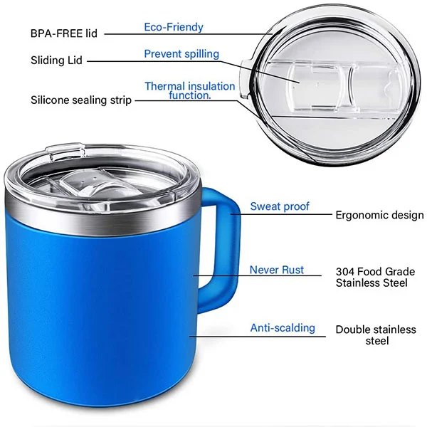 - 450 ml вакуумно изолирана чаша с дръжка за лесно съхранение на чаши в раници