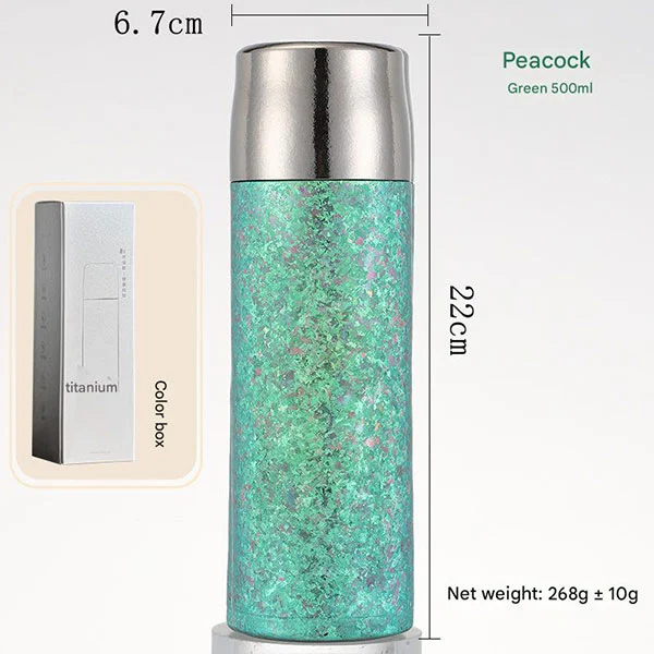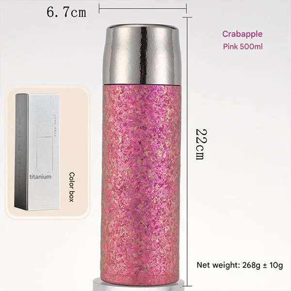 Тази титанова бутилка разполага с непропусклива чаша и е направена от 99,9% чист титан! Без химическо покритие! Титанът, който има добра биосъвместимост и устойчивост на корозия, превъзхожда обикновените материали като алуминий, пластмаса, стъкло и неръждаема стомана. Той е нетоксичен, безопасен и здравословен и няма да придаде вкус или мирис на храна или напитки. Неговата многократна употреба може да ви придружава много години.