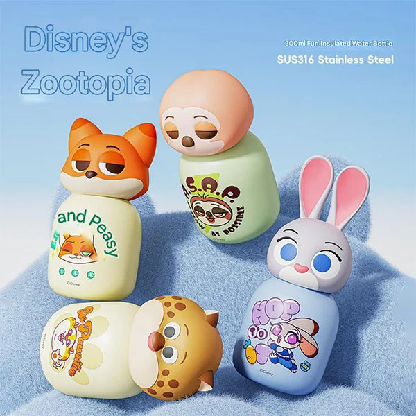 Дизайнът на Kudike на висококачествена бутилка за вода Zootopia е базиран на героите от анимационния филм на Disney Zootopia, извеждайки вашето визуално изживяване на следващото ниво. Ние поддържаме персонализиране и имаме зрял и завършен процес. Можете да персонализирате според любимия си герой, което също може да увеличи честотата на пиене на вода и да си осигурите здраво тяло!
